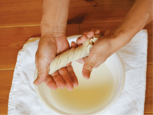 ①ぬるま湯1リットルに対していろはワックスクリーナーを30cc入れてよく混ぜます。